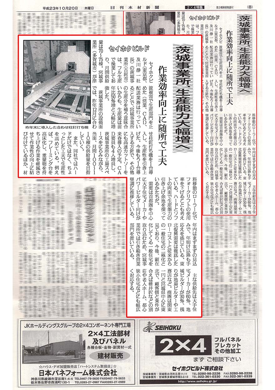合わせマグサ自動釘うち機 新聞掲載記事その2