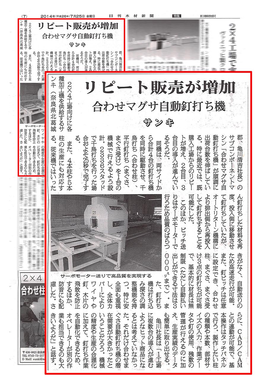合わせマグサ自動釘うち機 新聞掲載記事その3