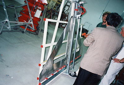 鋸の水平・垂直の精度チェックが行われています。