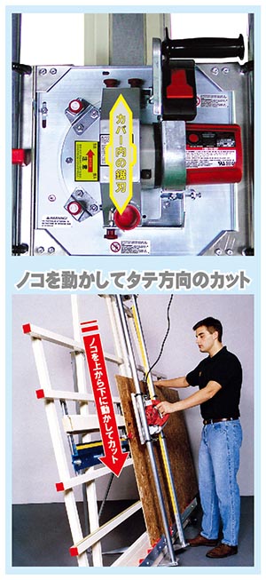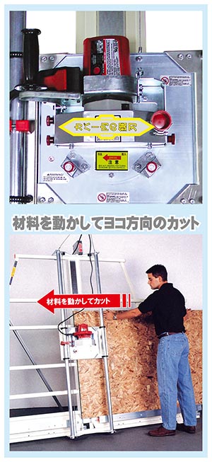 コンパクトパネルソーは鋸がターンテーブルでタテ・ヨコと回転します。