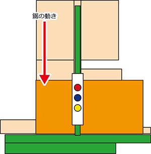 大型パネルソーは鋸が上から下に動いてカットする機構のため、